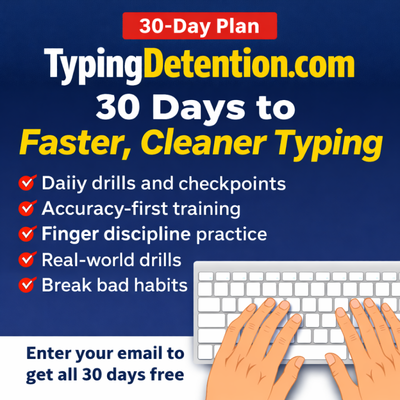 If your typing speed is “meh,” your accuracy is shaky, or you keep losing time fixing mistakes, this 30-day series is built to tighten everything up — one short daily drill at a time.